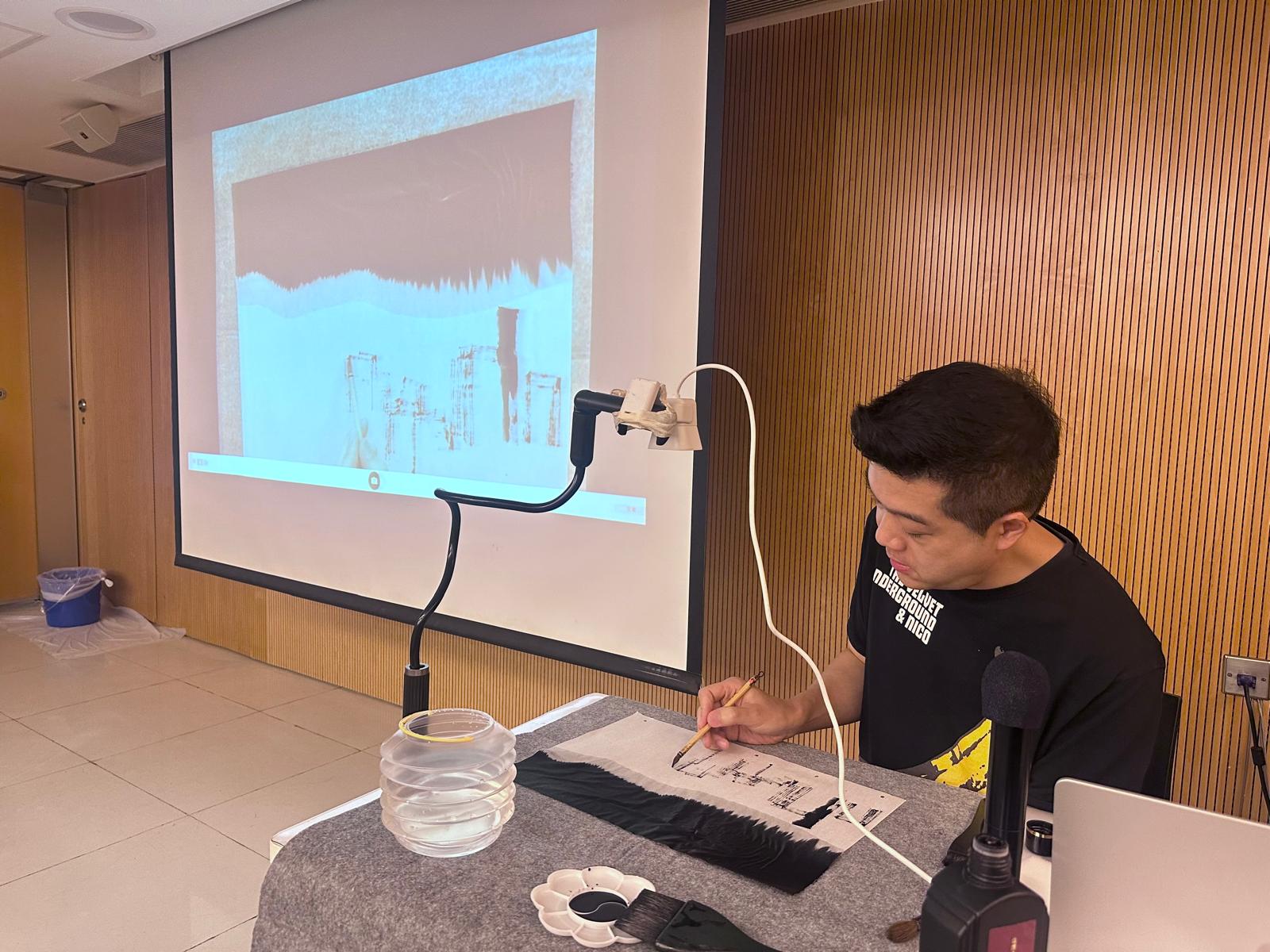 我們很榮幸當天邀得兩位客席導師親臨指導——香港當代水墨藝術家何紀嵐先生,以及擅長跨媒介創作的多元藝術家關舒文小姐。導師們不但親自示範,亦耐心講解構圖與創作技巧,啟發同學以嶄新角度感受藝術世界。