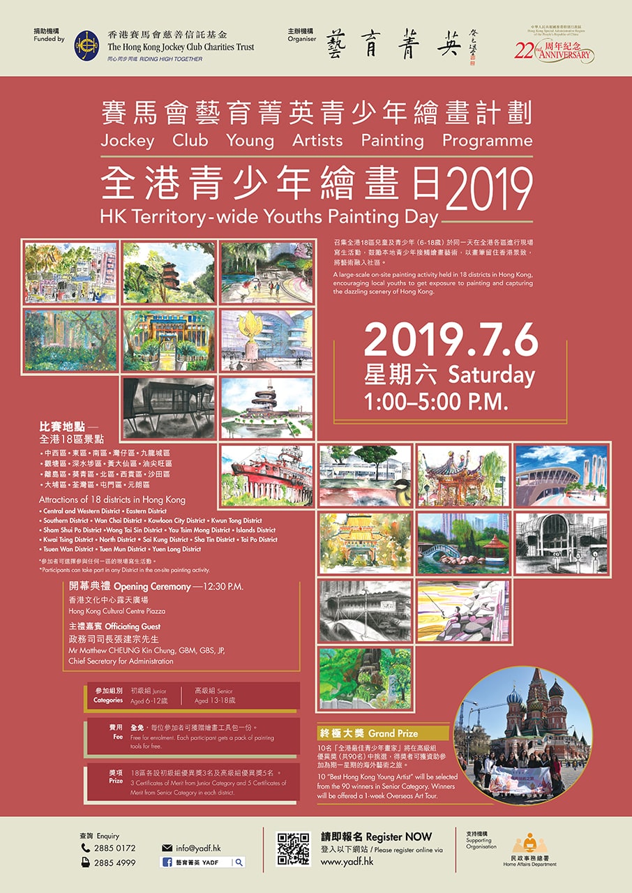 藝育菁英召集全港18區兒童及青少年,於7月6日(星期六)在全港各區進行現場寫生活動,鼓勵本地兒童及青少年(6-18歲)接觸繪畫藝術,以畫筆留住香港景致,以藝術融入社區。即日起至7月3日開放網上報名,立即了解各區詳情: