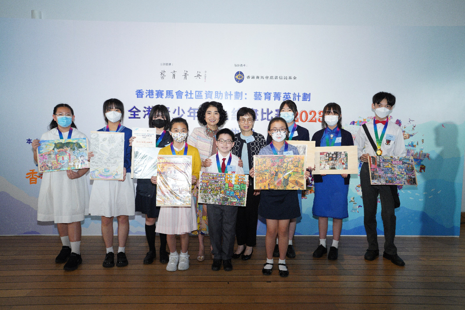 比賽頒奬禮 202520242023 香港賽馬會社區資助計劃:藝育菁英計劃舉辦的「全港青少年繪畫比賽」每年從超過4,500份參賽作品中嚴選出100位優秀青少年畫家晉身總決賽。為表揚得獎學生的傑出表現,並讓他們與親友一同分享這份藝術成果與喜悅,活動每年均吸引眾多本地年輕藝術愛好者踴躍參與,成為青少年藝術界的重要盛事。