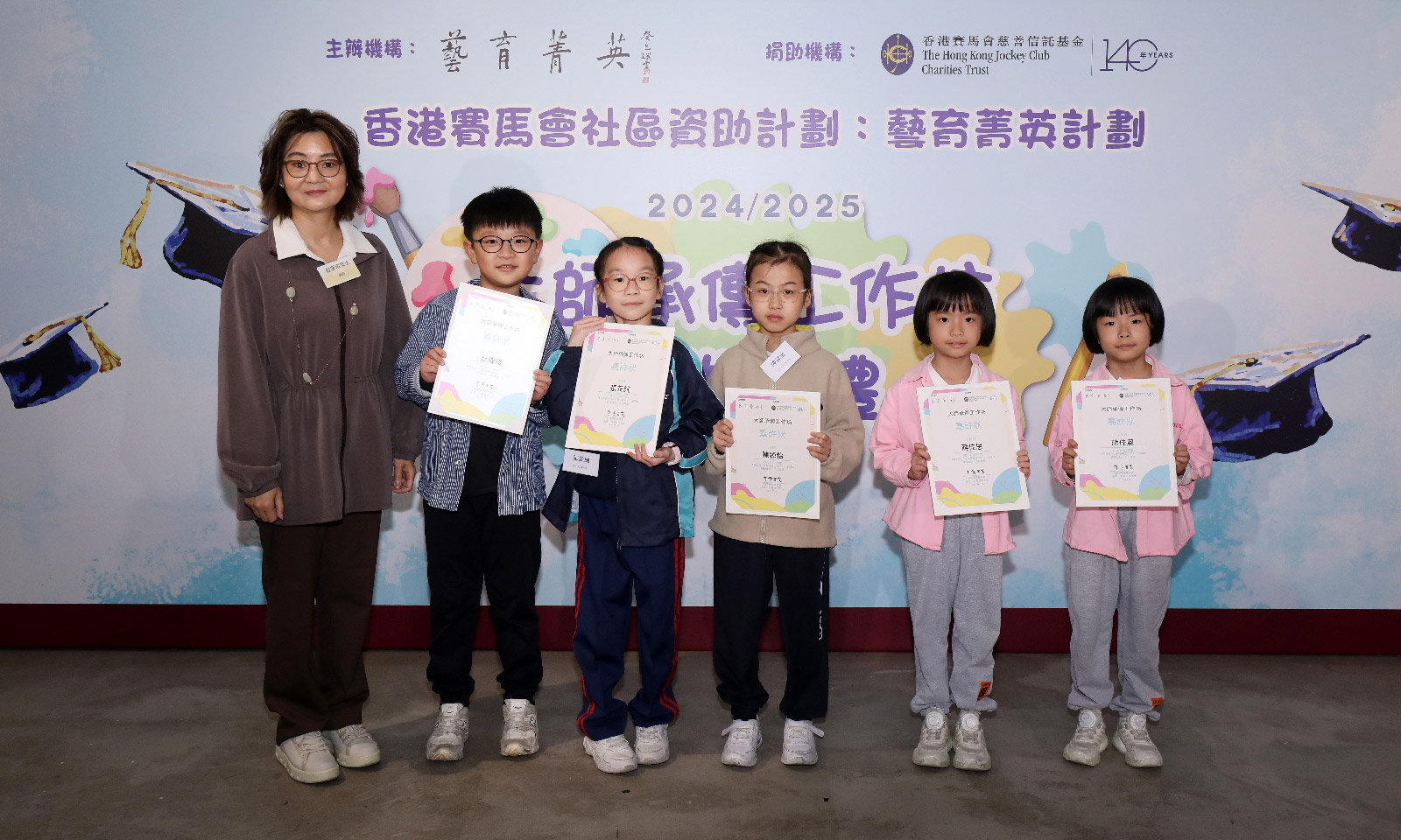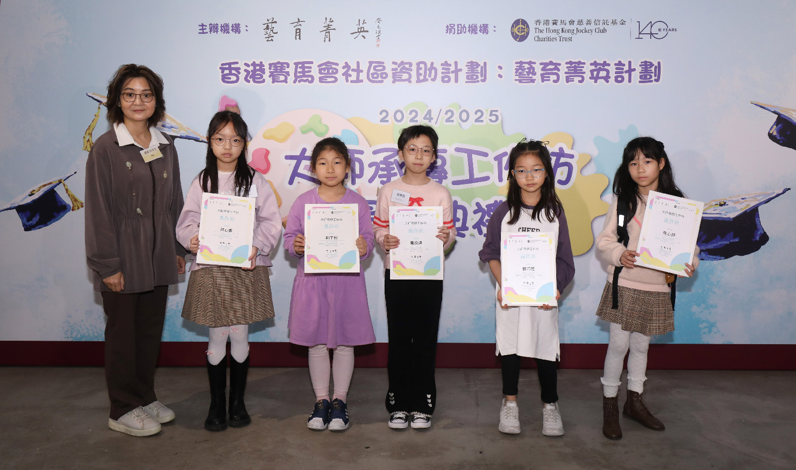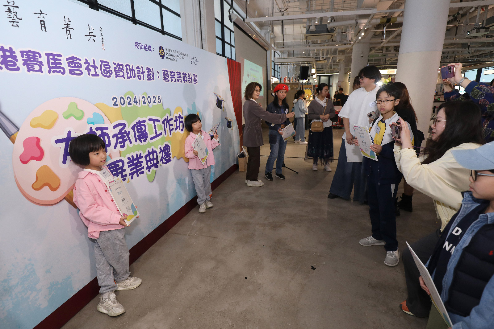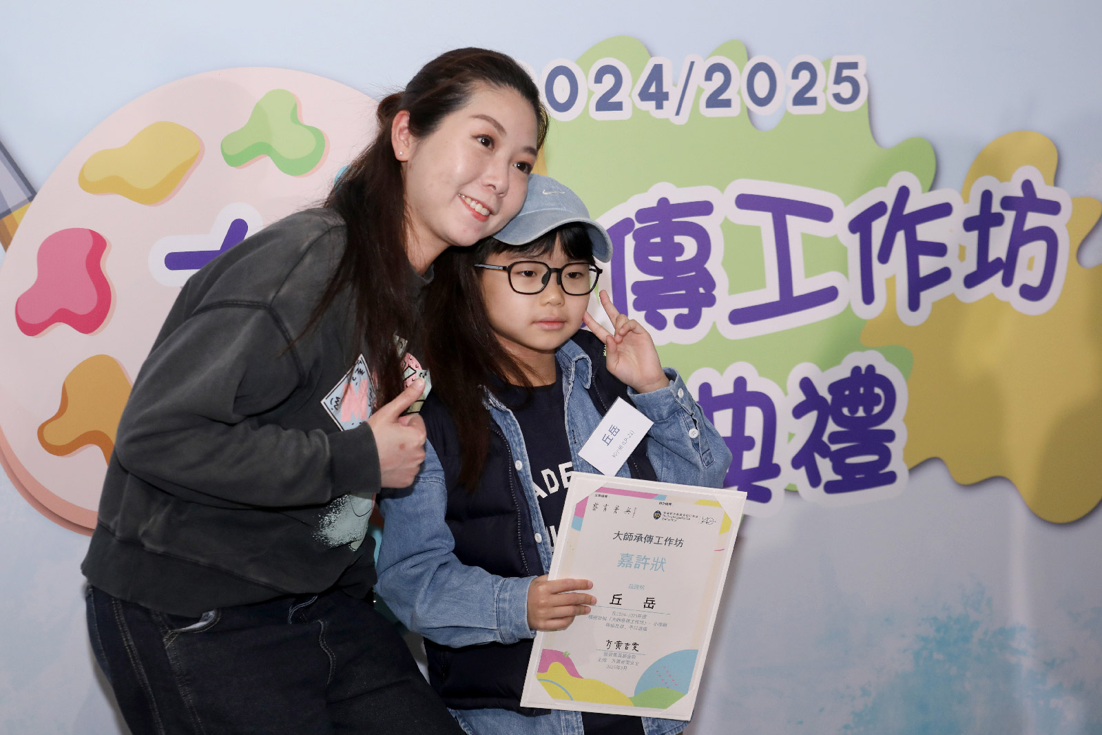 工作坊畢業典禮 20252024 積極參與「大師承傳工作坊」的同學,憑著認真投入及持續努力,獲邀出席工作坊的畢業典禮,以表揚他們在藝術學習上的成就與付出。典禮上,同學們獲頒發畢業證書,以肯定其完成課程的努力及在創作過程中所展現的毅力與才華。 畢業典禮不僅象徵同學在藝術之路上的一個重要里程碑,更是對他們勇於探索、多元創作精神的嘉許。透過儀式感的肯定,鼓勵同學繼續在藝術領域中發光發熱,將所學所感延伸至日後的學習與生活中,培養持續創作與審美的能力,為未來文化藝術發展貢獻一分力量。